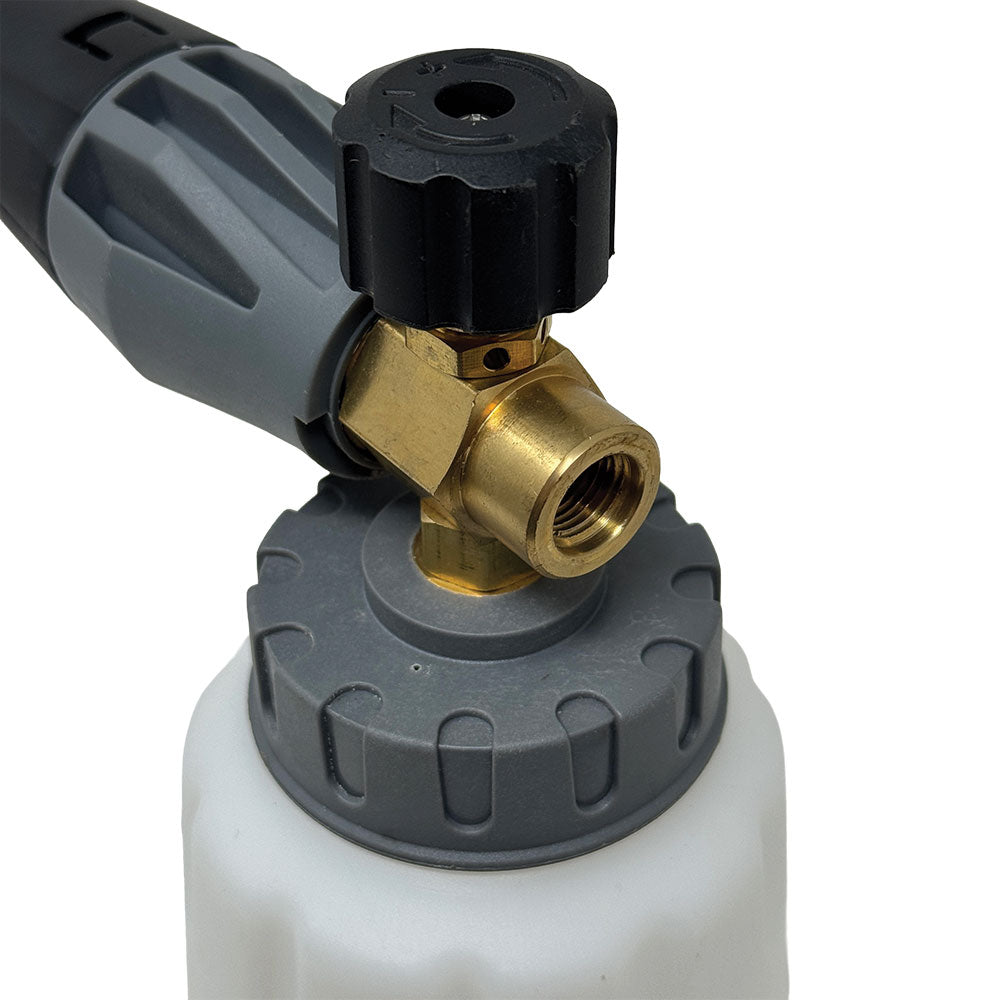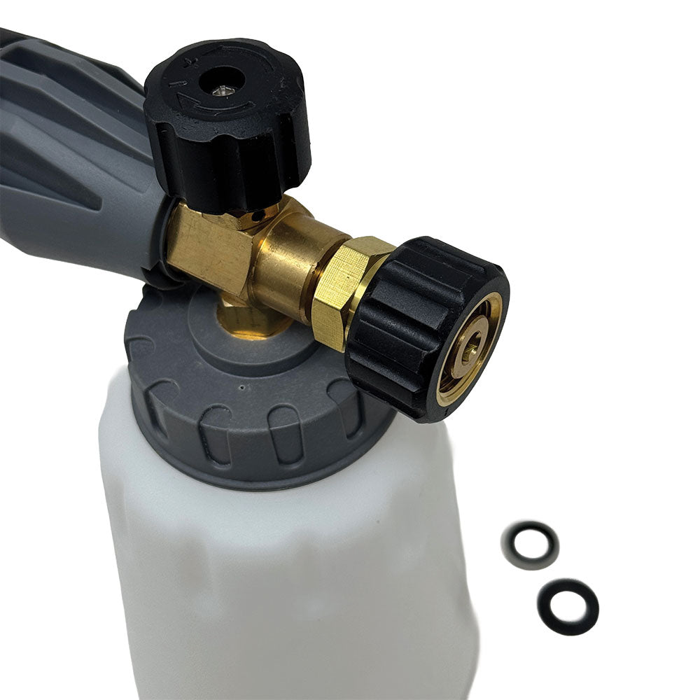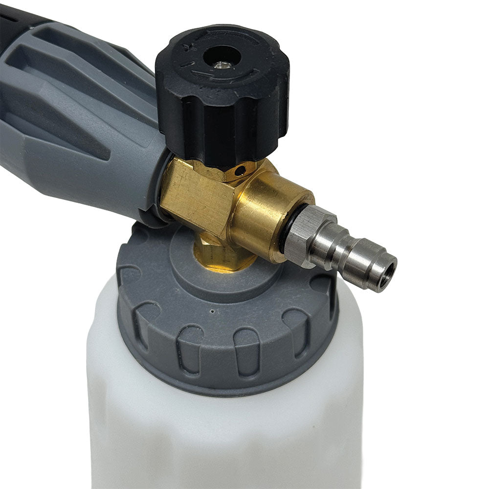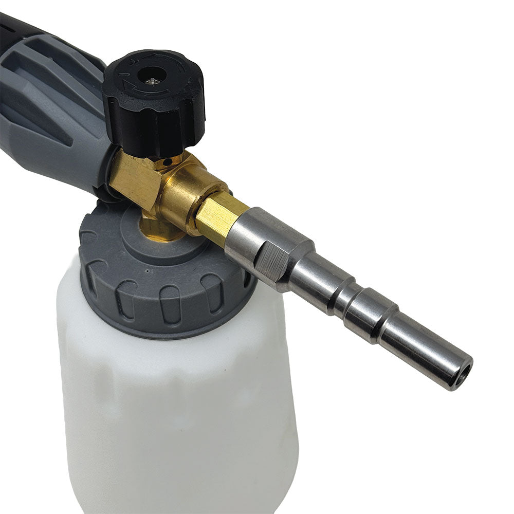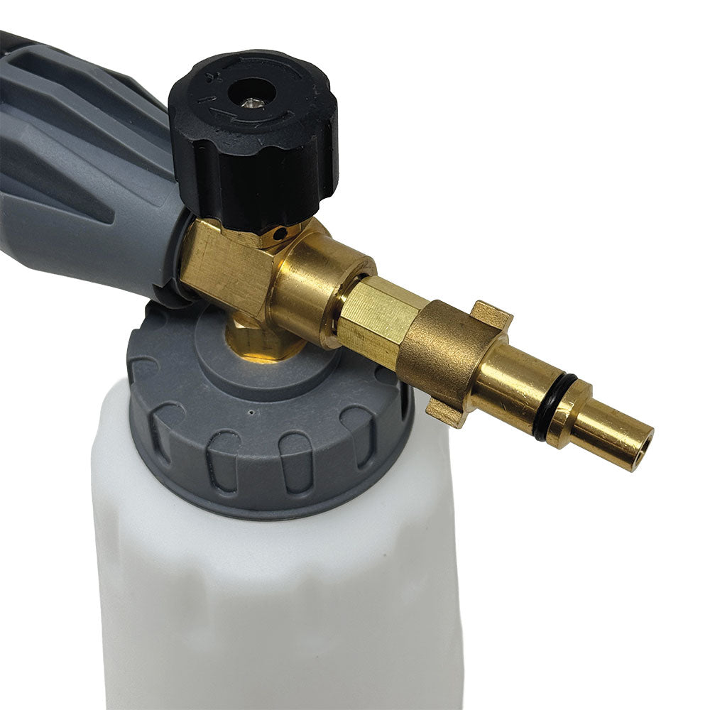 The lance bottle holds up to 1 Litre of your favourite snow foam. The lance combines high pressure water with snow foam or car wash soap and air to produce thick clinging foam.