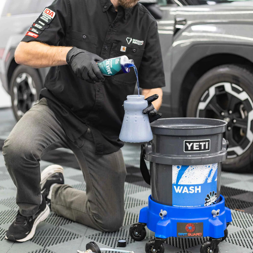 Diamond Revive is an acidic (pH 2.5) shampoo that restores coatings by unclogging and restore water behaviour. Over time, contaminants build up and block your coating's abilities - this powerful restorative formula helps break down stubborn residue, road salts, and harsh contaminants, bringing your coating back to life with peak water-beading and self-cleaning performance. This effective shampoo provides exceptional lubrication and works great even in hard water conditions. Diamond Revive can be applied via a foam cannon as a pre-wash foam, making this shampoo a must for professionals & enthusiasts alike.