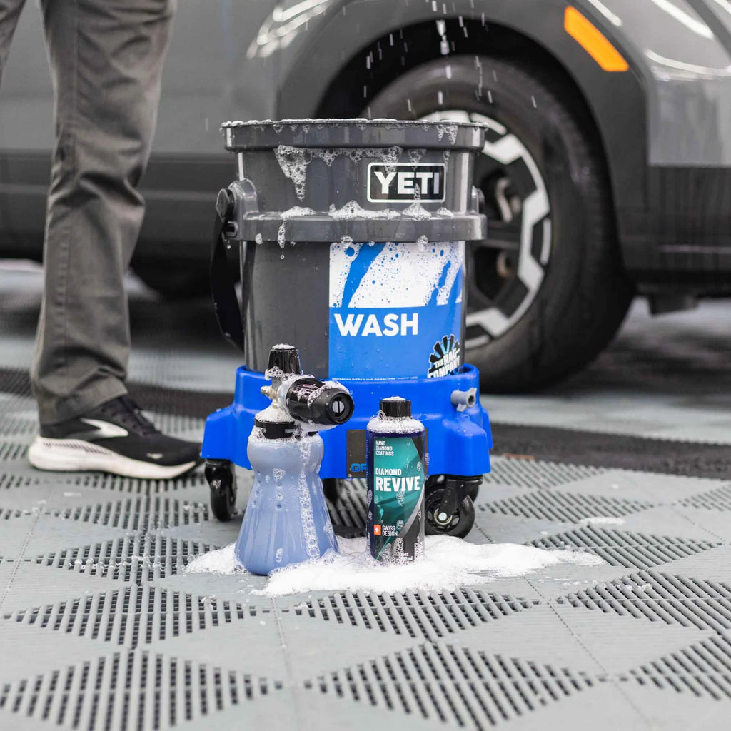 ADDITIONAL TIP: Add up to 100ml (3oz) of Diamond Revive Shampoo to a foam cannon already filled to 3/4 of capacity with water. Foam your vehicle and let the foam dwell for 3–5 minutes. Do not let the foam dry out. Rinse well and then wash your vehicle with either Diamond Revive Shampoo or Diamond Coat Care Shampoo. After drying, apply Diamond QD or Diamond Quick Body to leave a durable layer of protection, gloss & shine.