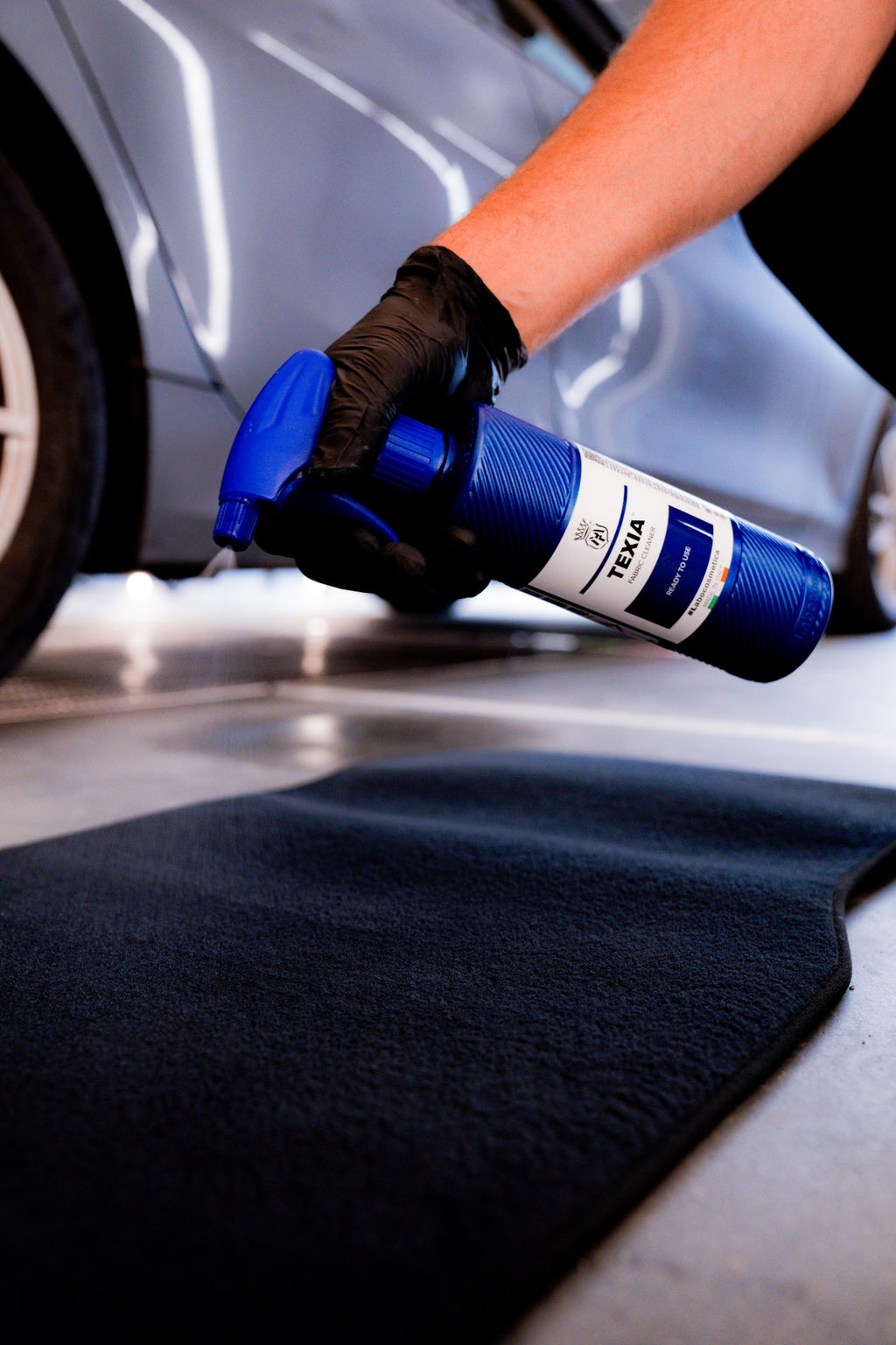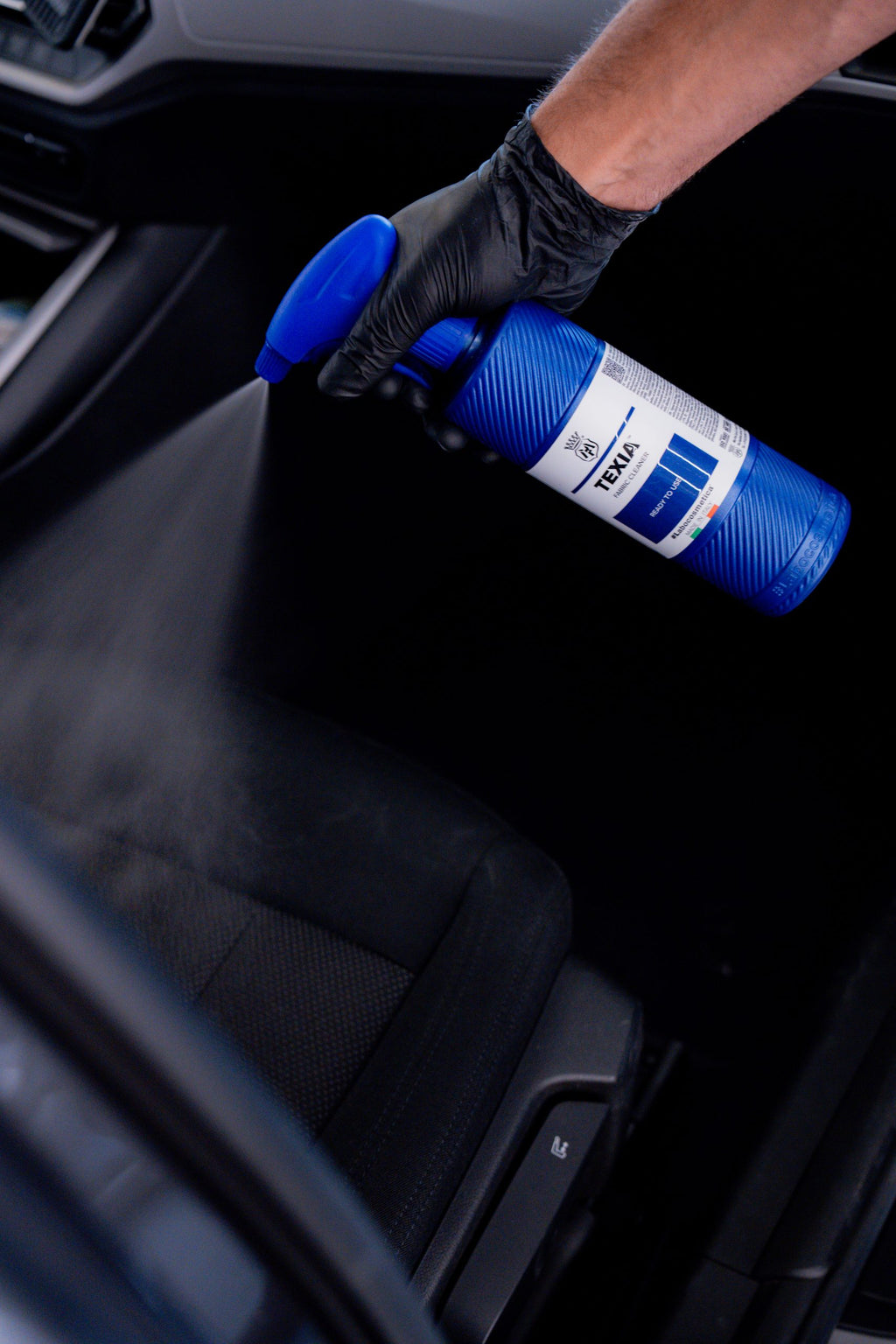 Texia is like pre-treating shirts. But for your car. The idea is simple: replicate, on a seat or a headliner, what is usually done with collars and cuffs. A targeted pre-treatment to dissolve invisible dirt, yellowing from sweat, black marks from friction. But without enzymes, without heavy washing, without hours of waiting.