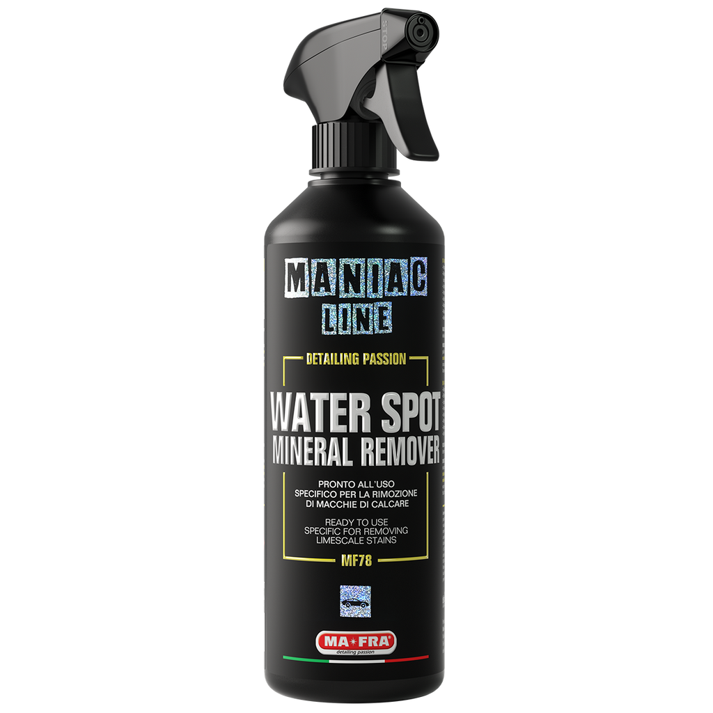 Maniac Water Spot Mineral Remover is the specific decontaminant for removing limescale stains and mineral contaminants that adhere to glass and bodywork. This advanced product is the ideal solution for those looking for an effective and safe decontaminating action, significantly improving the appearance and protection of your vehicle.