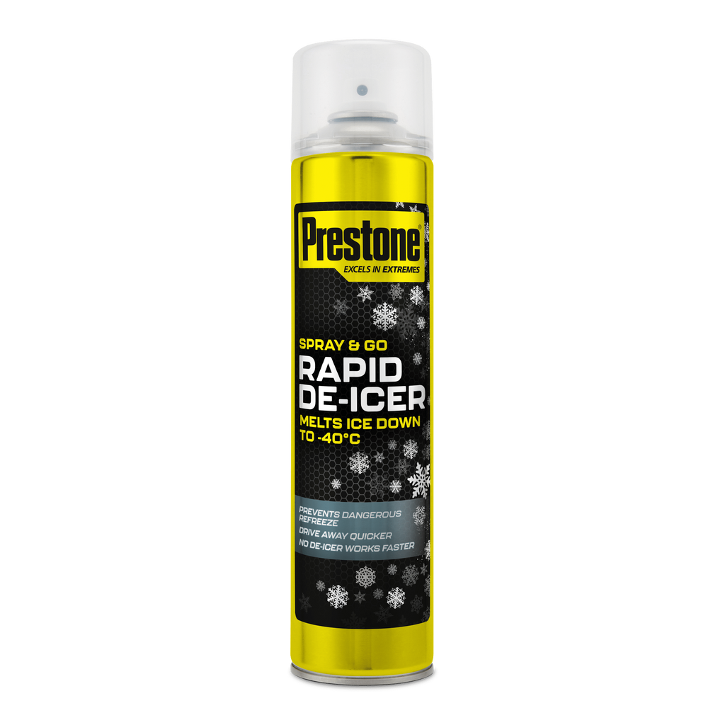 Spend less time in the cold scraping ice from your windows, and let Prestone do the hard work for you. Simply spray on the rapid de-icer and watch the ice melt quickly.