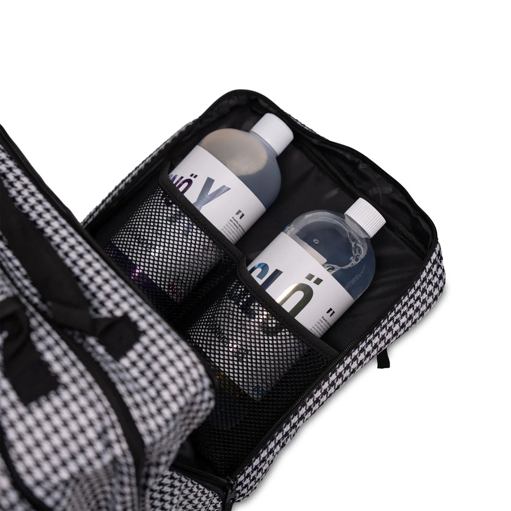 It’s rugged, spacious, stylish - thanks to its houndstooth design - and ready to roll with you to your next wash day.